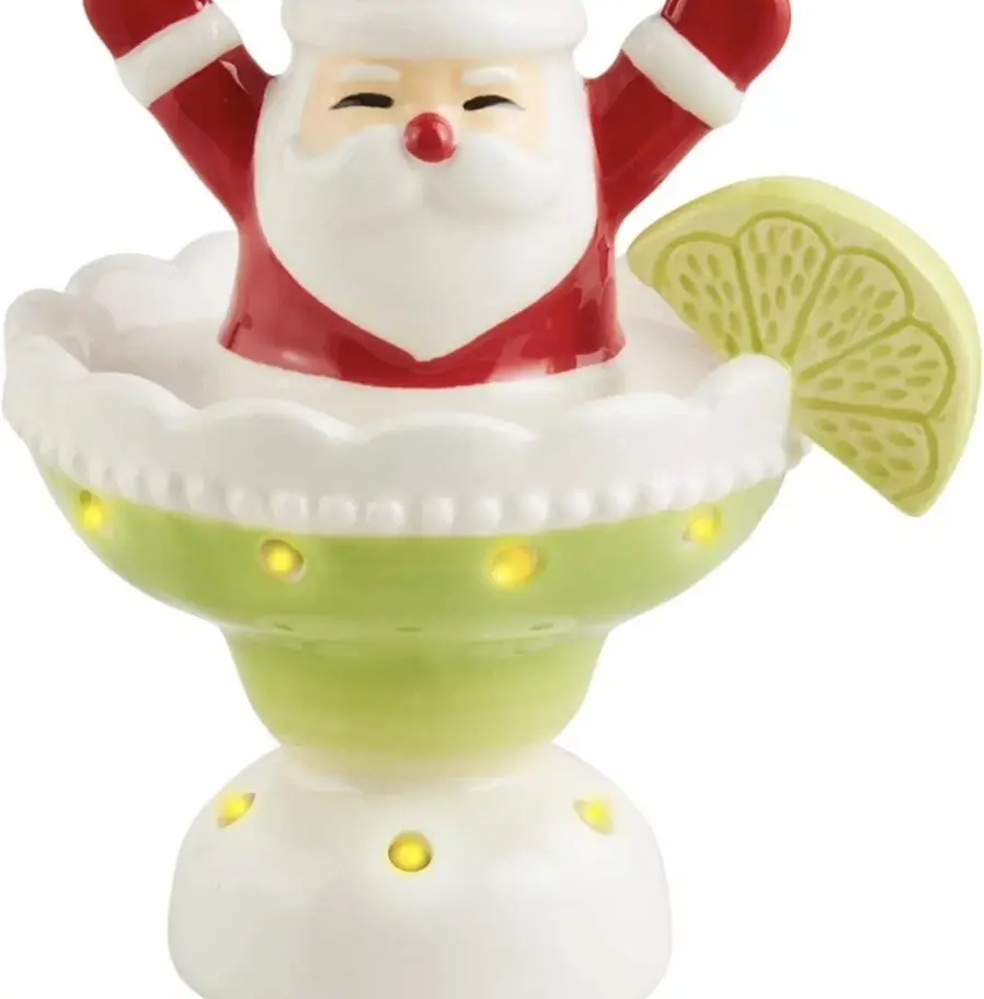 Ceramic "happy" Santa in a Margarita (lights up) for Mudpie serving accessories.