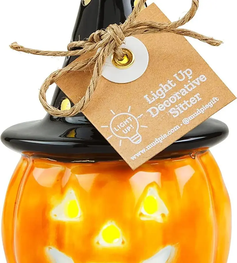 Ceramic pumpkin in a witch's hat (lights up) for Mudpie serving accessories.